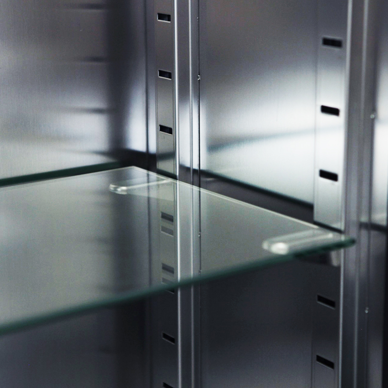 廠,實(shí)驗(yàn)室等各種小型器械的保管和存放,采用sus304不銹鋼板制作,上層為玻璃門,柜體內(nèi)部為圓弧造型,無(wú)死角易于清潔。