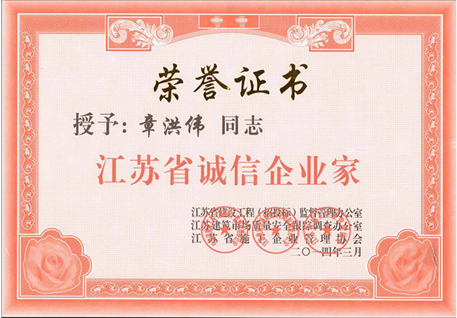 2014年誠(chéng)信企業(yè)家榮譽(yù)證書