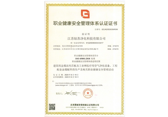 職業(yè)健康安全管理體系認(rèn)證證書
