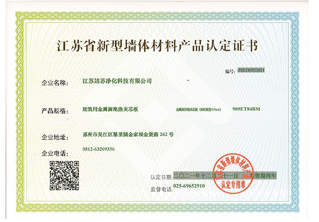江蘇省新型墻體材料產(chǎn)品認(rèn)定證書
