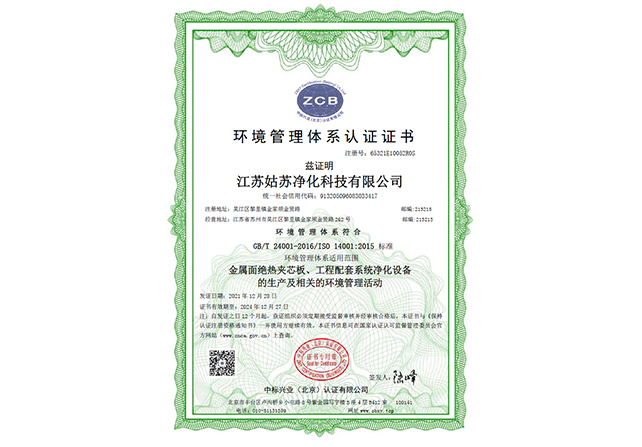 環(huán)境管理體系認(rèn)證證書