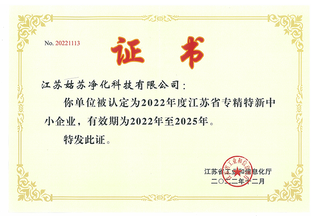江蘇省專精特新中小企業(yè)